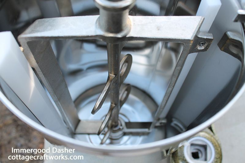 All the same quality features of the Immergood old-fashioned ice cream freezer-makers. It features a super-insulated poly tub, heavy-duty stainless-steel tub latches, a stainless-steel freezer can, and a stainless-steel triple-action dasher, topped with a clear, see-through poly can cover to visualize the ice cream-making process.