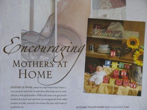 The magazine comes to your home four times a year, packed with how-to and ideas that help you in your role as a wife and mother. With each issue, you receive much-needed practical and spiritual encouragement from women like you who know the joys and trials of motherhood.